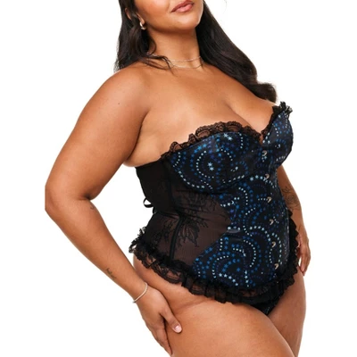Feeling flirty? This strapless corset in a fun print will let your inner vixen shine. The Auburn corset comes with a matching G-string and is perfect for a special night in.