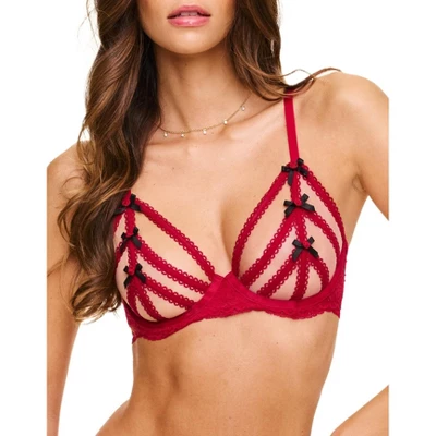 This bra is a bold novelty style that will make you feel like a total babe. It’s got unlined sheer cups with elastic straps and bows, so you’ll be showing off some serious skin. The lace frame and fully adjustable straps will keep you feeling supported.