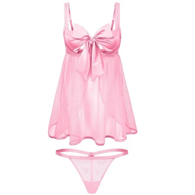 This babydoll features a giant bow that literally “unwraps” to reveal unlined cups and the presents underneath! It also has fully adjustable straps and a hook and eye closure, plus it comes with a matching g-string panty.
