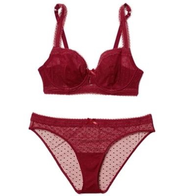 Introducing the Cassandra unlined demi bra—crafted from sheer fabric featuring super-soft mesh, a scrumptious red dot print, scallop trim detail, and a keyhole closure on the cups.