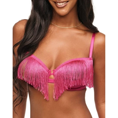 This bold & sexy bra is made from shimmer fabric and features flirty fringe trim on the cups and the panties, fully adjustable straps, and hook and eye closure. This bra is perfect for a night out on the town, or a special occasion.