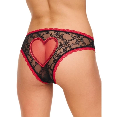 This lace panty is perfect for adding a touch of sass to your lingerie collection. The lace back with a heart mesh cut-out is sure to turn heads, while the contrast lace trim adds a touch of sophistication.