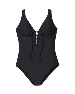 Plunging necklines and lace-up details are our favorite way to show off partially recycled threads for a reason—we have a feeling you’ll agree.