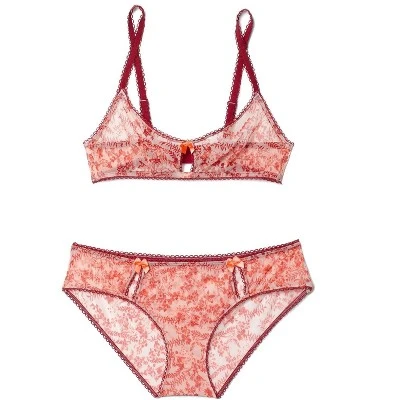 The Gabby bralette features a pretty print that’s perfect for fall. She has a scooped neckline with a chic keyhole detail, wireless construction, and decorative elastic trim.