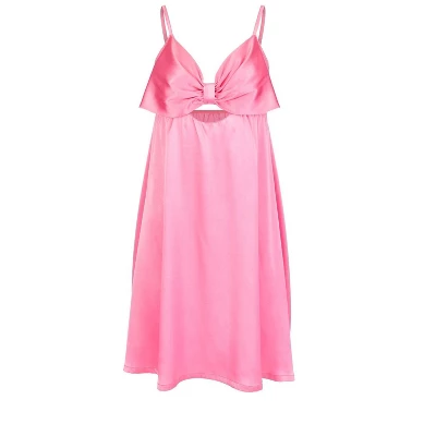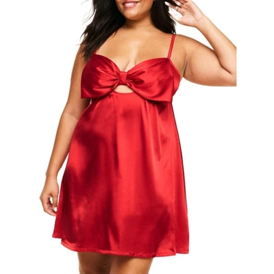 Feel like a present in this holiday-ready slip that features bow-like cups and satin fabric flowing down for the perfect babydoll fit — it also has adjustable straps!