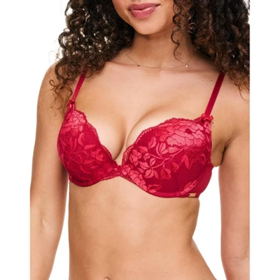 Give your lingerie collection a sultry update with the Jaya Push-up Plunge Bra. The two-toned lace & mesh cups are supported by fully convertible straps—complete the set with the matching thong or bikini panty.