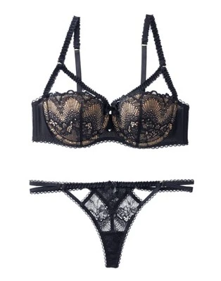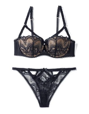- Two-part cup construction with lace & strappy details