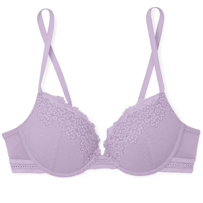 This sultry bra and panty combo is perfect for date night. The Larina push-up plunge bra has underwire support with a soft ribbed-look lace cups and wings.