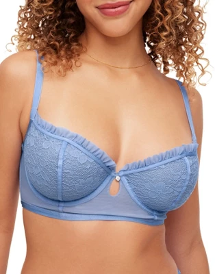 Show off your romantic side with the Maddie, a beautiful lace longline demi bra in pale nuances. The delicate color and girly detailing make this bra perfect for any day you’re feeling a little extra feminine.
