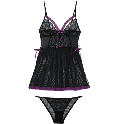 We can’t decide whether we love Monalisa’s strappy-lace neckline, floral unlined cups, or flirty flyaway skirt more—and luckily we don’t have to, ‘cause this sheer babydoll—paired with a matching bikini panty—comes with it all.