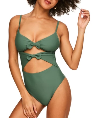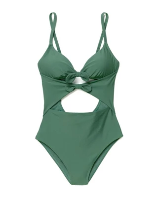 A partially recycled one-piece—but make it just as sexy as a bikini. These dreamy-blue open-front cutouts were made for showing off, and we won’t be convinced otherwise.
