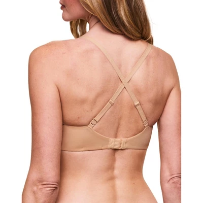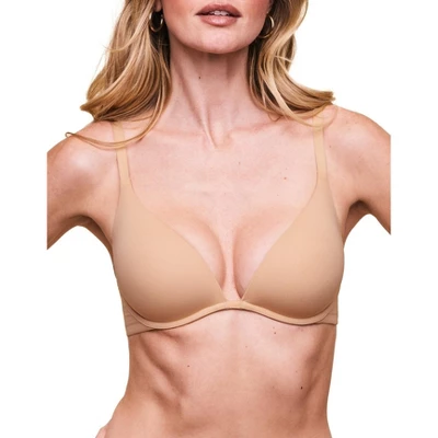 This bra features a push up plunge design with underwire and smooth cups with inner molded ultra-soft push-up pads. The bra has a clean-finish, seamless neckline, underarm, and bottom band, as well as fully adjustable straps and a hook and eye closure.