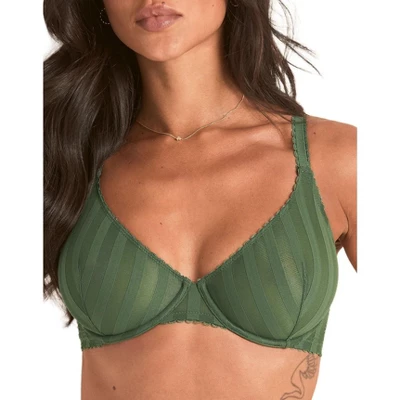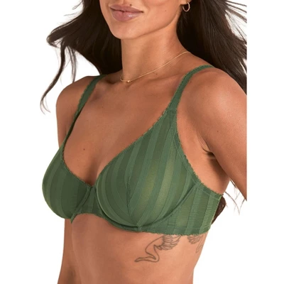 This sheer bra is made of striped mesh with picot lace trim. It features unlined cups, supportive underwire, adjustable straps, and a hook and eye closure, ensuring a perfect fit.