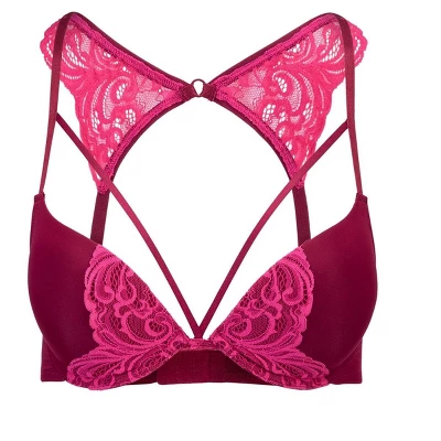 This push-up plunge bra is a romantic lace bra with a flirty lace effect on the racerback and the cups.