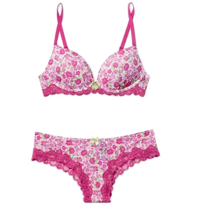 The Shea wireless plunge is a fun and flirty bra that features a wireless push-up design, floral patterned cups, and a lace-trimmed bottom band.