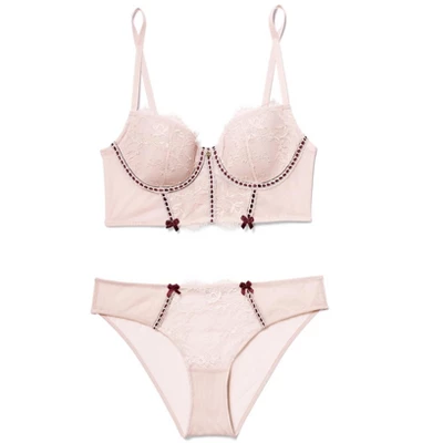 The soft lace cups are outlined with contrast satin ribbon and bows to draw the eye, while the longline silhouette gives you all-night comfort. Complete the look with a matching thong or bikini panty!