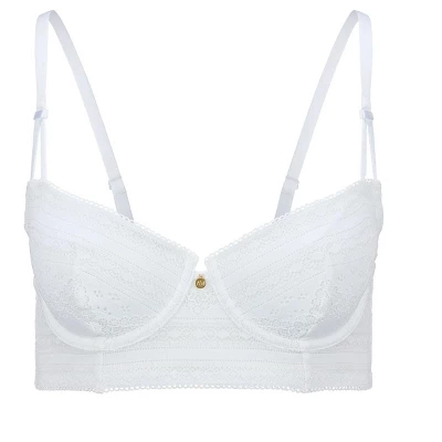 The Zooey bra is an unlined lace balconette. It features soft lace cups and frame, fully adjustable straps and hook and eye closure.